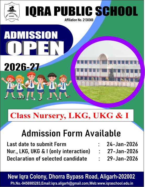 The three-day Inter School Football Tournament organized by Iqra Public School, Aligarh concluded today with great enthusiasm, discipline, and remarkable participation from all competing schools.
